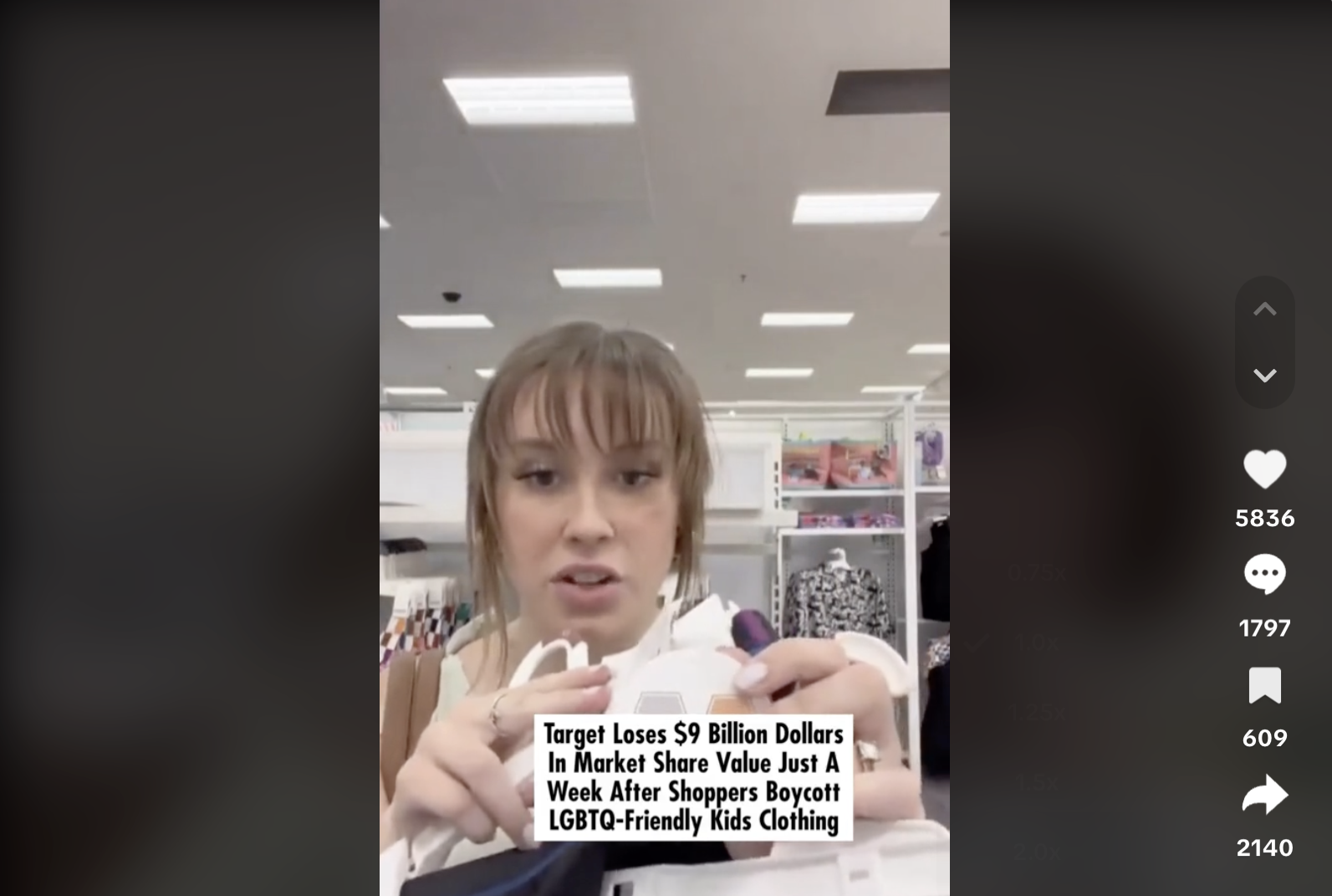 Il video, che è stato il nono risultato per il termine di ricerca “Target”, ha attirato più di un milione di visualizzazioni, e molti utenti hanno scritto nei commenti che non faranno più acquisti presso il rivenditore. “Boicottaggio permanente questa volta”, ha scritto un utente. “Chi ci sta? Non scherzate con i nostri figli”.