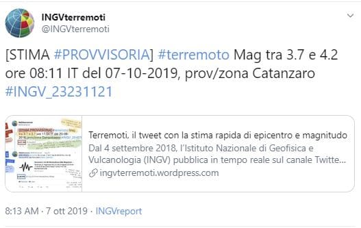Terremoto oggi in Italia 7 ottobre 2019: scossa in provincia di Catanzaro | Scosse in tempo reale