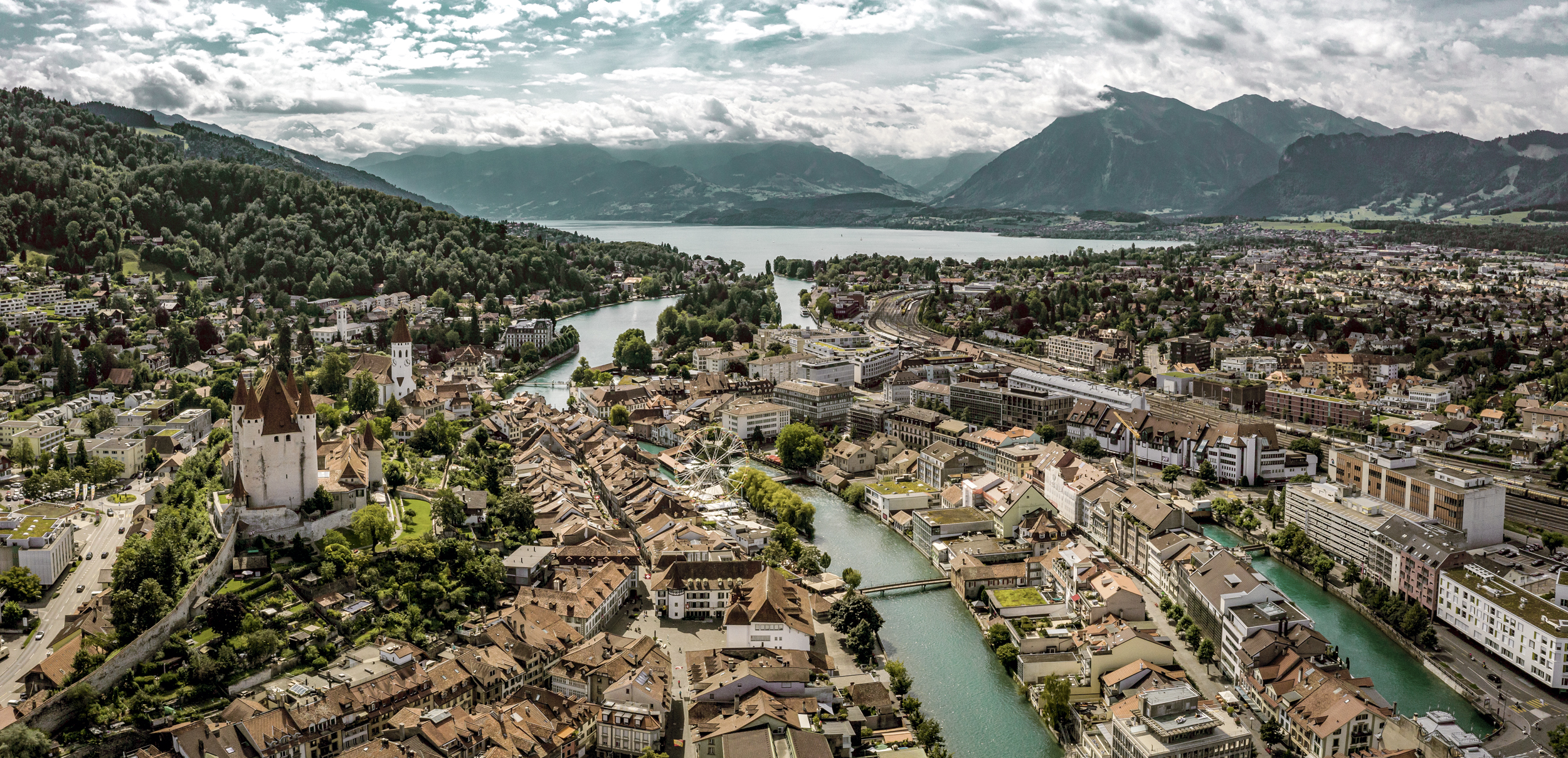 Risalendo in treno, passando per la città di Frutingen dove, grazie alle sorgenti termali, sorge uno spettacolare giardino tropicale, si prosegue per il lago di Thun, sulle cui sponde sorgono le città medioevali di Spiez e di Thun. Da Spiez si può percorrere il lago in battello e scendere per visitare la splendida città di Thun con il suo castello medioevale che svetta dalle cime che si specchiano sul lago cristallino, i suoi ponti in legno, i suoi palazzi storici e i tanti locali alla moda.