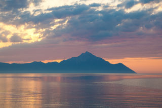 Grecia - Regione Calcidica - Penisola di Sithonia - Sarti - Il monte sacro Athos all'alba visto dal villaggio